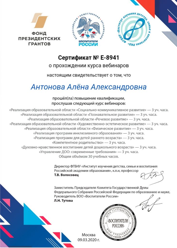 Профессиональная переподготовка: АНО ДПО “Волгоградская Гуманитарная Академия профессиональной подготовки специалистов социальной сферы”, 2018 г.